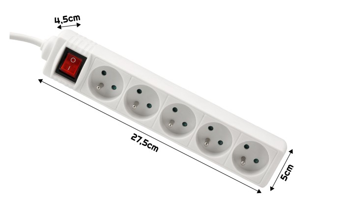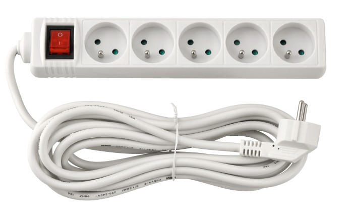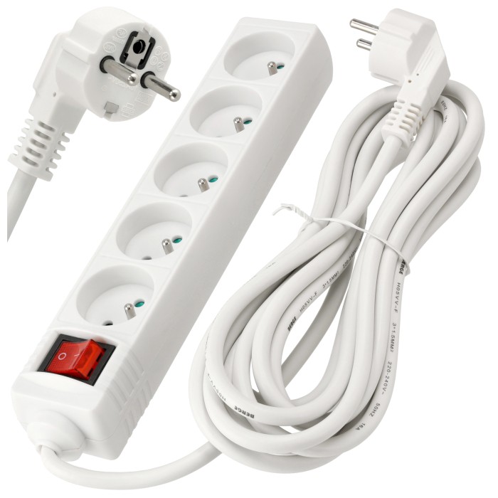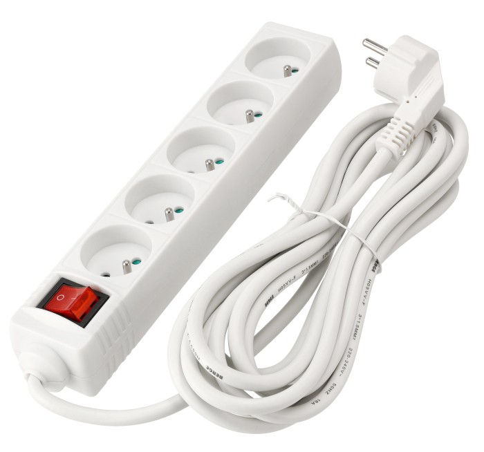 Przedłużacz 5 gniazda 5m z wlacznikim BIAŁY