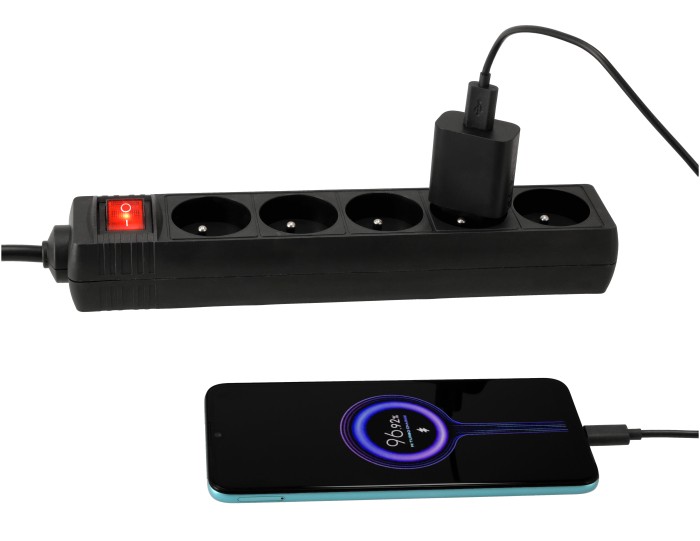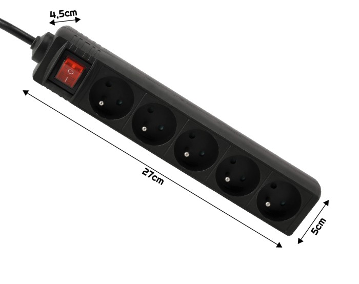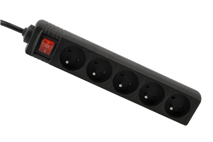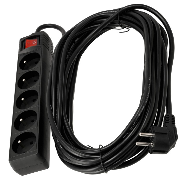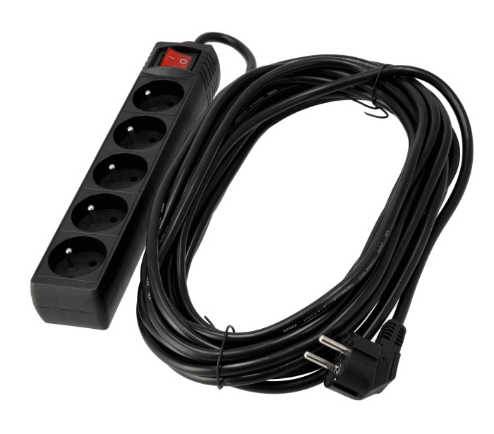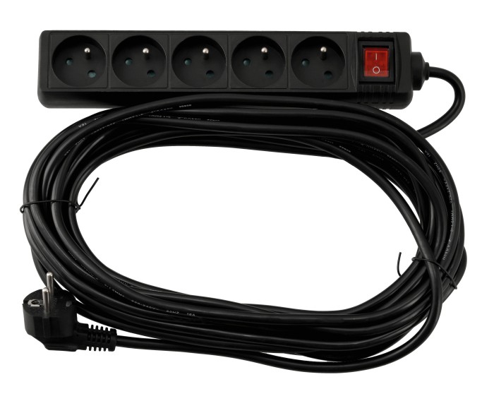 Przedłużacz 5 gniazda 10m z wlacznikim CZARNY