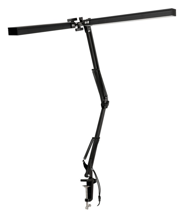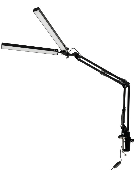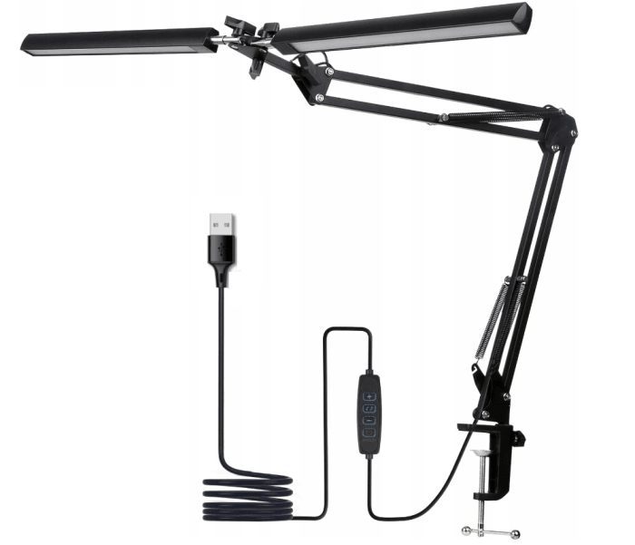 Lampka kreślarska i biurkowa podwójna LED 8W to wyjątkowo funkcjonalne i wszechstronne oświetlenie, które doskonale sprawdzi się zarówno podczas pracy, nauki, jak i przy zajęciach wymagających precyzji, takich jak malowanie, szycie, rękodzieło czy stylizacja paznokci. Wyposażona w regulowane tryby świecenia, pozwala dopasować barwę i intensywność światła do indywidualnych potrzeb, zapewniając jednolite, miękkie oświetlenie pozbawione migotania i cieni. Dzięki temu skutecznie eliminuje szkodliwe aspekty niebieskiego światła i chroni wzrok. Smukła, trójosiowa konstrukcja z metalowym ramieniem wahadłowym regulowanym w zakresie 270° umożliwia wielokierunkowe ustawienie strumienia światła, a kompaktowe rozmiary oszczędzają miejsce na biurku.