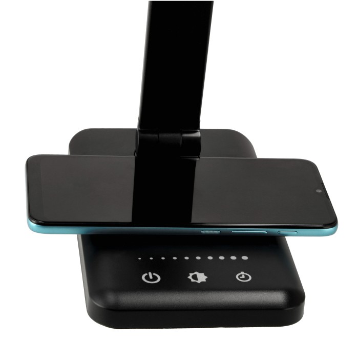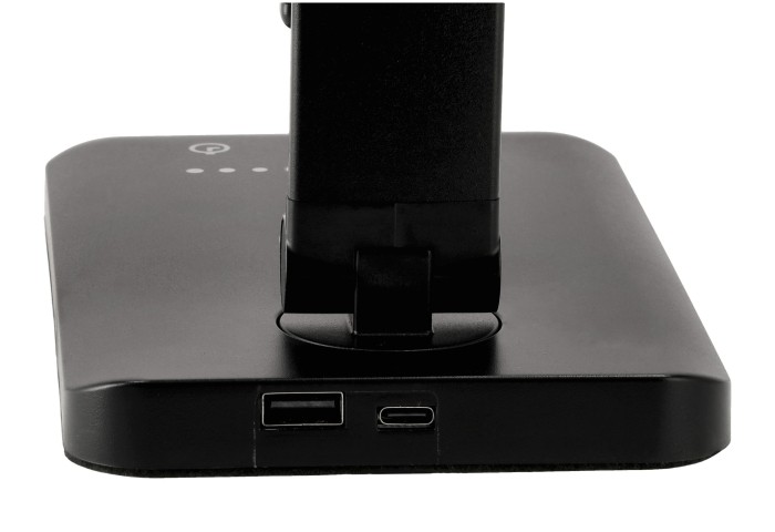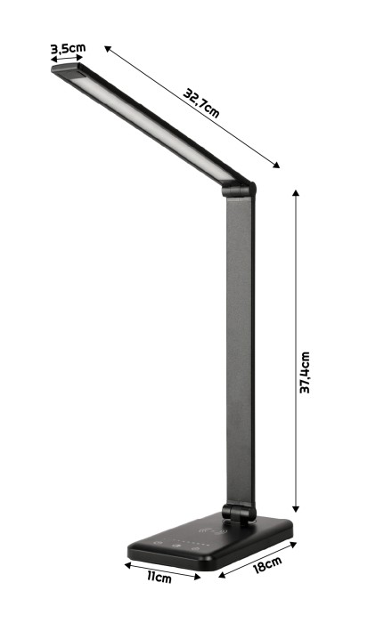 Energooszczędna lampka biurkowa o mocy 5W z 52 diodami LED zapewnia wydajne i ekologiczne oświetlenie przy minimalnym zużyciu energii. Wyposażona w dotykowy panel sterowania umożliwia płynne ściemnianie w 10 poziomach jasności, zmianę barwy światła (ciepła 3000K, neutralna 3500K/4200K, zimna 5000K/6000K), a także ustawienie czasomierza (30 lub 60 minut). Dodatkowo posiada ładowarkę indukcyjną oraz port USB, co zwiększa wygodę użytkowania. Stylowy design z wysokiej jakości materiałów sprawia, że idealnie komponuje się ze szkolnym biurkiem. W zestawie znajduje się kabel USB, umożliwiający szybkie i łatwe podłączenie.