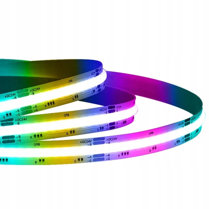 Nowoczesna taśma LED COB RGB+W to innowacyjne rozwiązanie, które łączy w sobie pełną paletę kolorów RGB z dodatkową diodą białą (W – White). Dzięki temu pozwala na uzyskanie nie tylko efektownego, wielokolorowego oświetlenia, ale także naturalnego światła białego o wysokiej jakości.